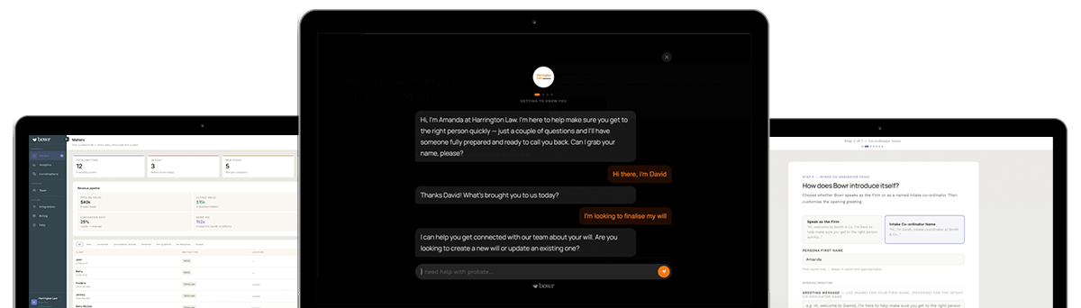 Bowr is an AI intake agent — it has a real conversation with your website visitor, qualifies their enquiry, and delivers a structured brief to you instantly. No scripted loops. No aggressive sales tactics. No generic FAQs.